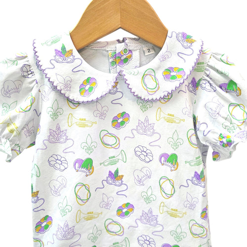 Short Sleeve Collared Bubble in Mardi Gras Print -